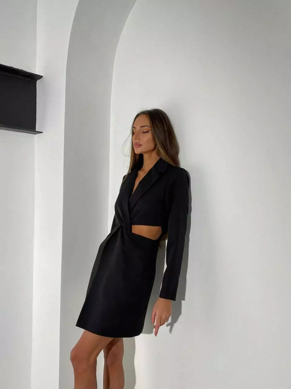 Однотонна сукня-блейзер одночасно виглядає лаконічно та елегантно та для зручності надягання є потайна застібка на спинці, по центру
