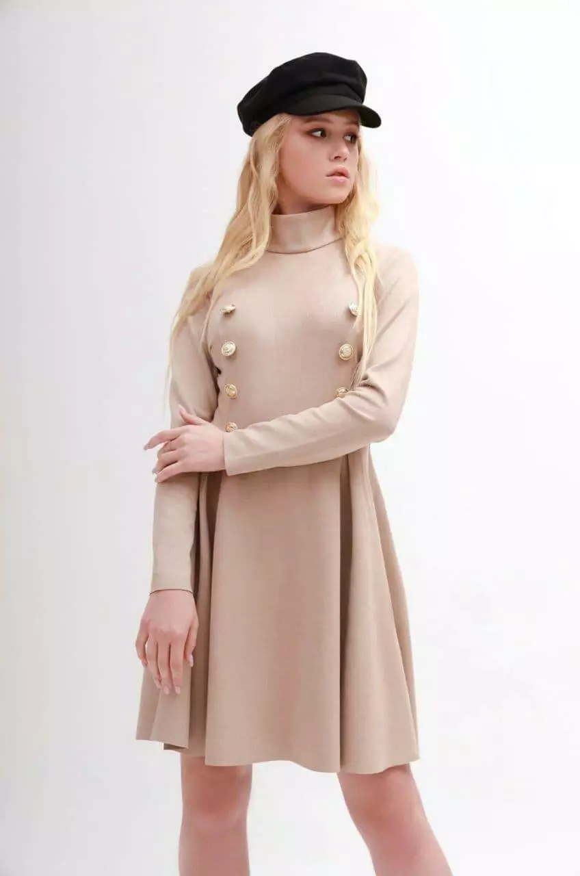 Демісезонне плаття з пишною спідницею, декороване ґудзиками Застібається потайною блискавкою