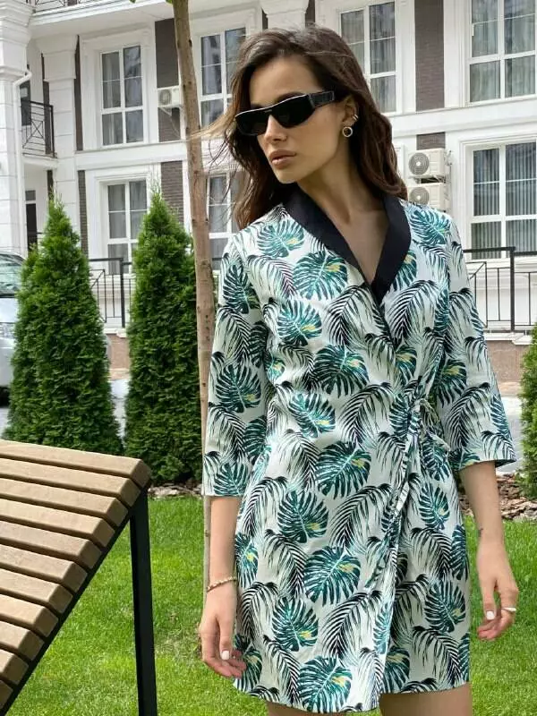 Застібається всередині на пуговицю і зав'язується на пришивний пояс