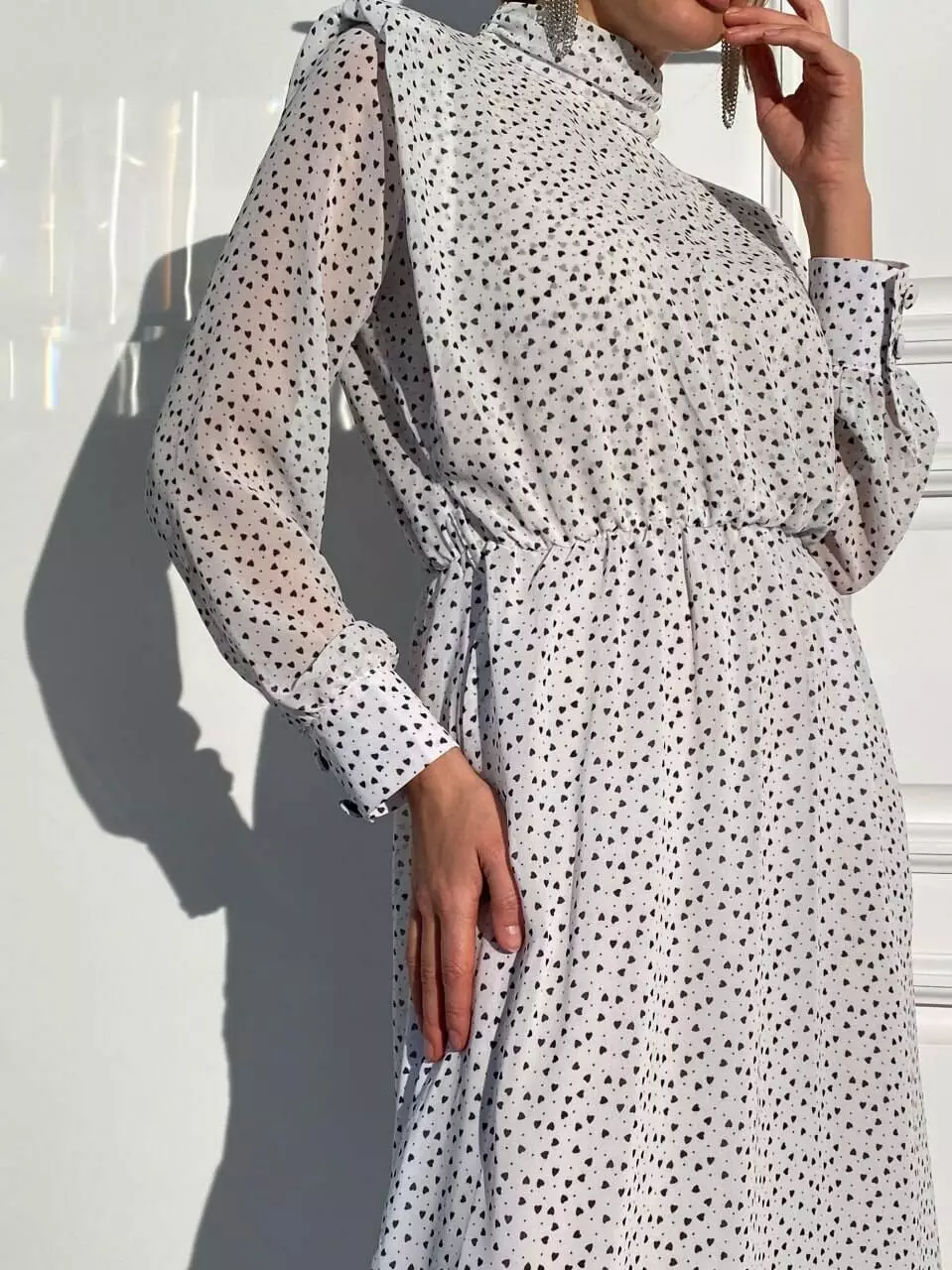 Повітряна, стильна сукня ROISE з трендовими об'ємними плечима та романтичним принтом, яка ідеально підходить як для повсякденного, так і для святкового образу і підкорює своєю ніжністю Легка сукня ROISE добре підкреслює талію маючи пояс під гумку, без ременя, така модель сукні буде доречною як для міських прогулянок, так і для вечірнього виходу делікатне прання при температурі 30°