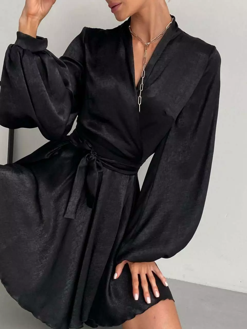 Легка, повітряна сукня з рукавами Несеметричний низ сукні Дуже пишні рукава Сукня зав'язується на запах довгими зав'язками Розмір: one size 42-46