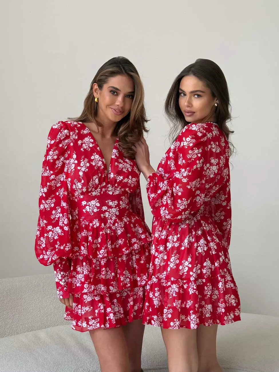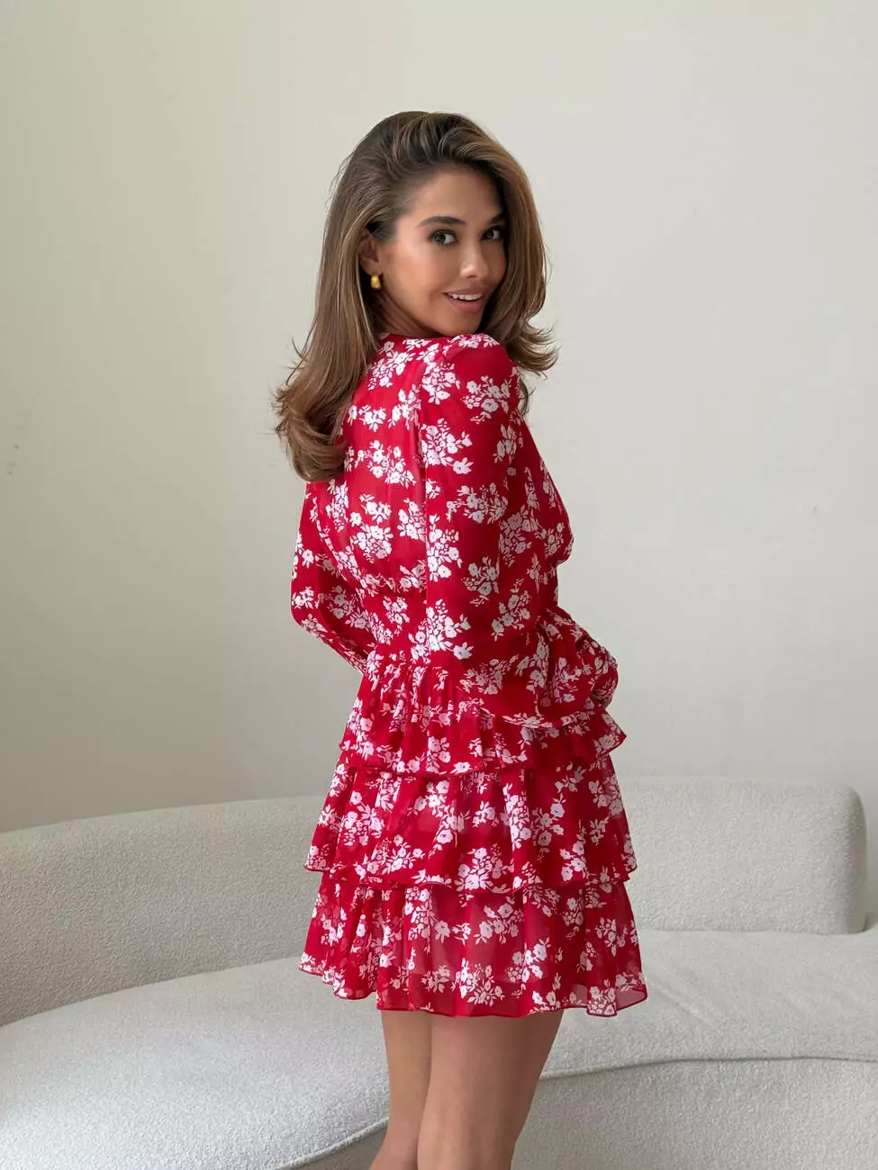 Сукня VIKKY колір квіти білі на червоному