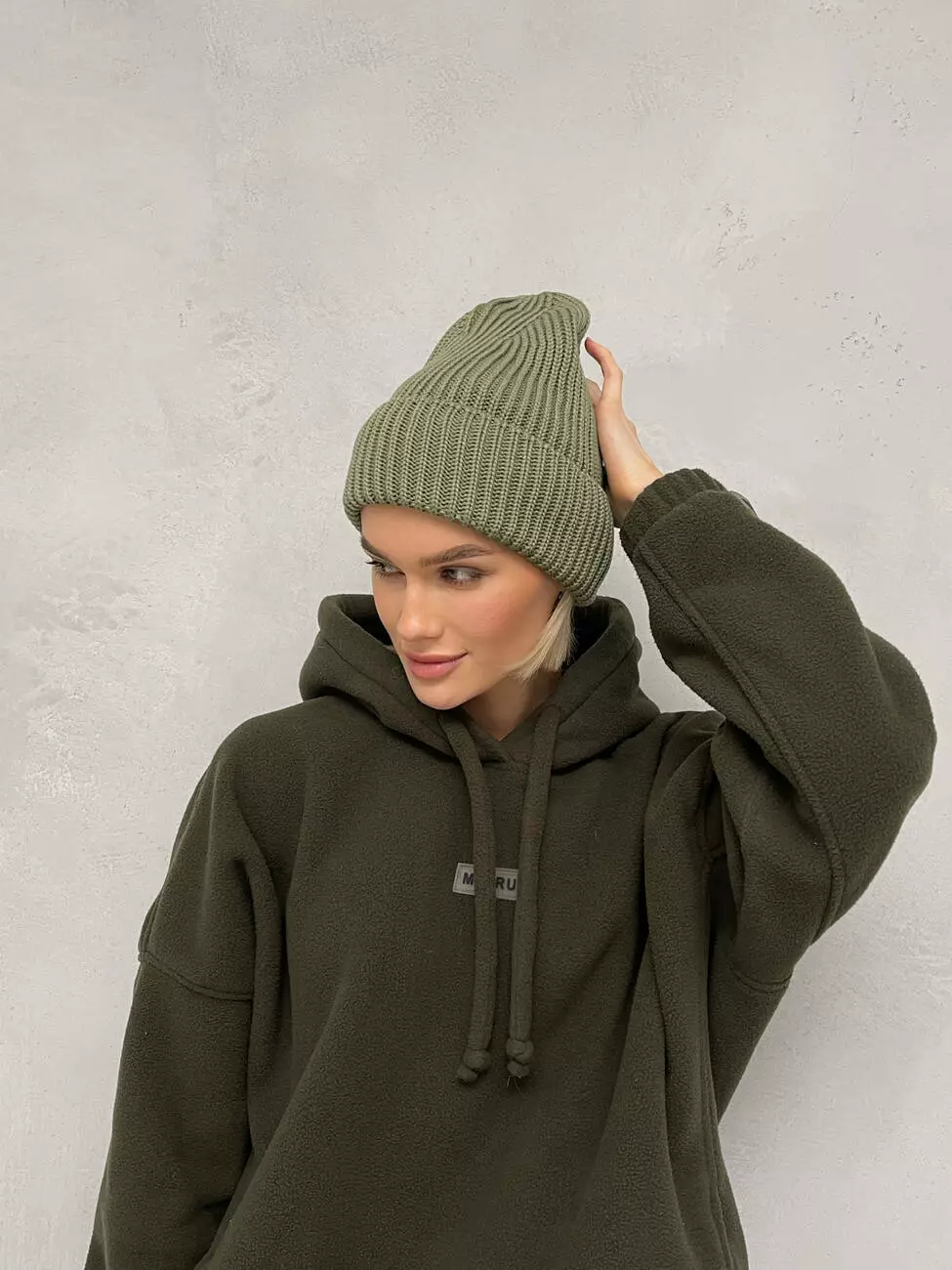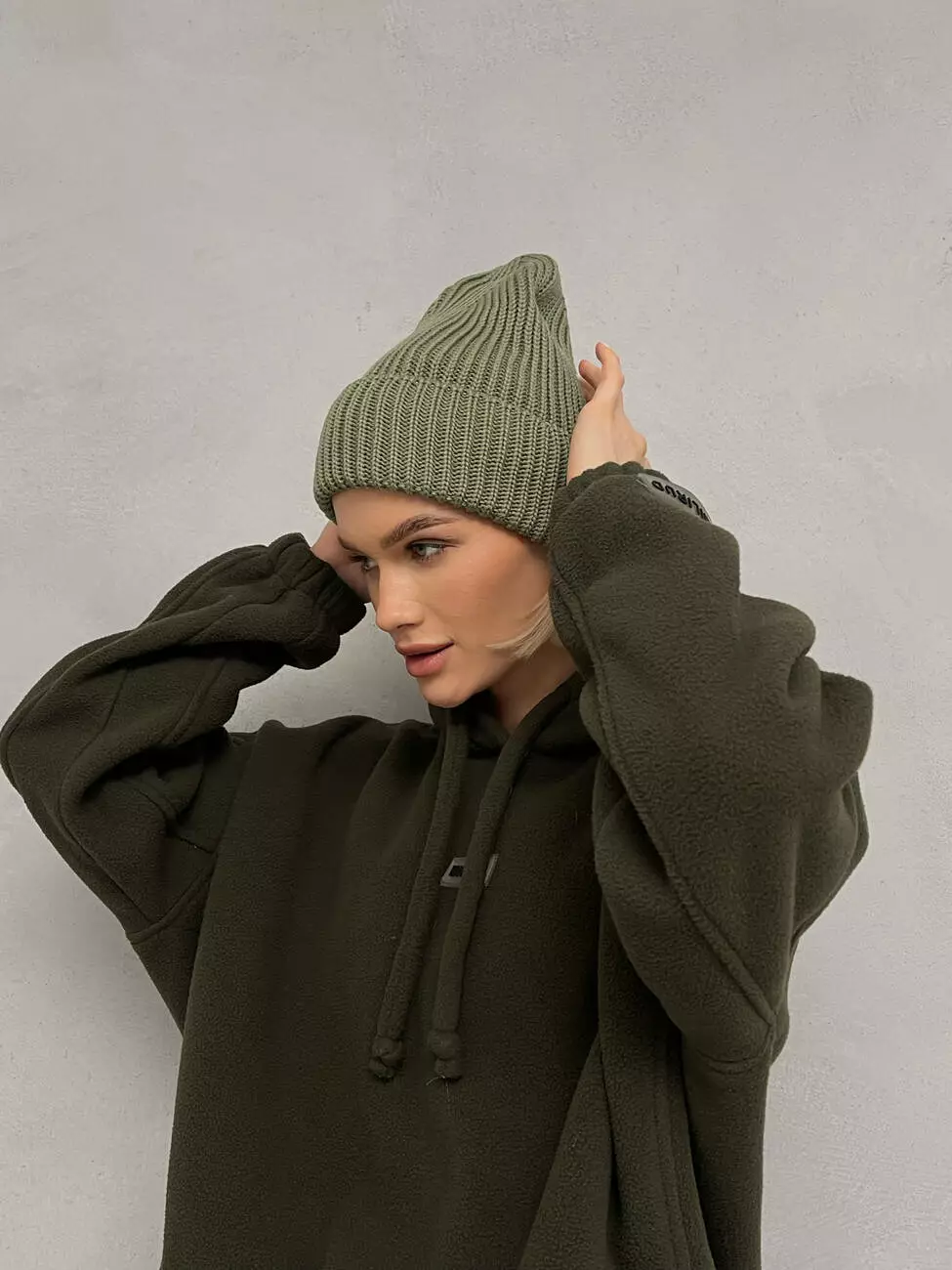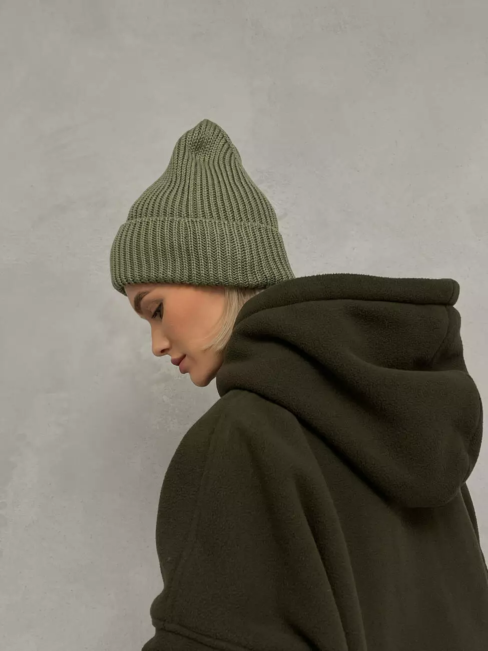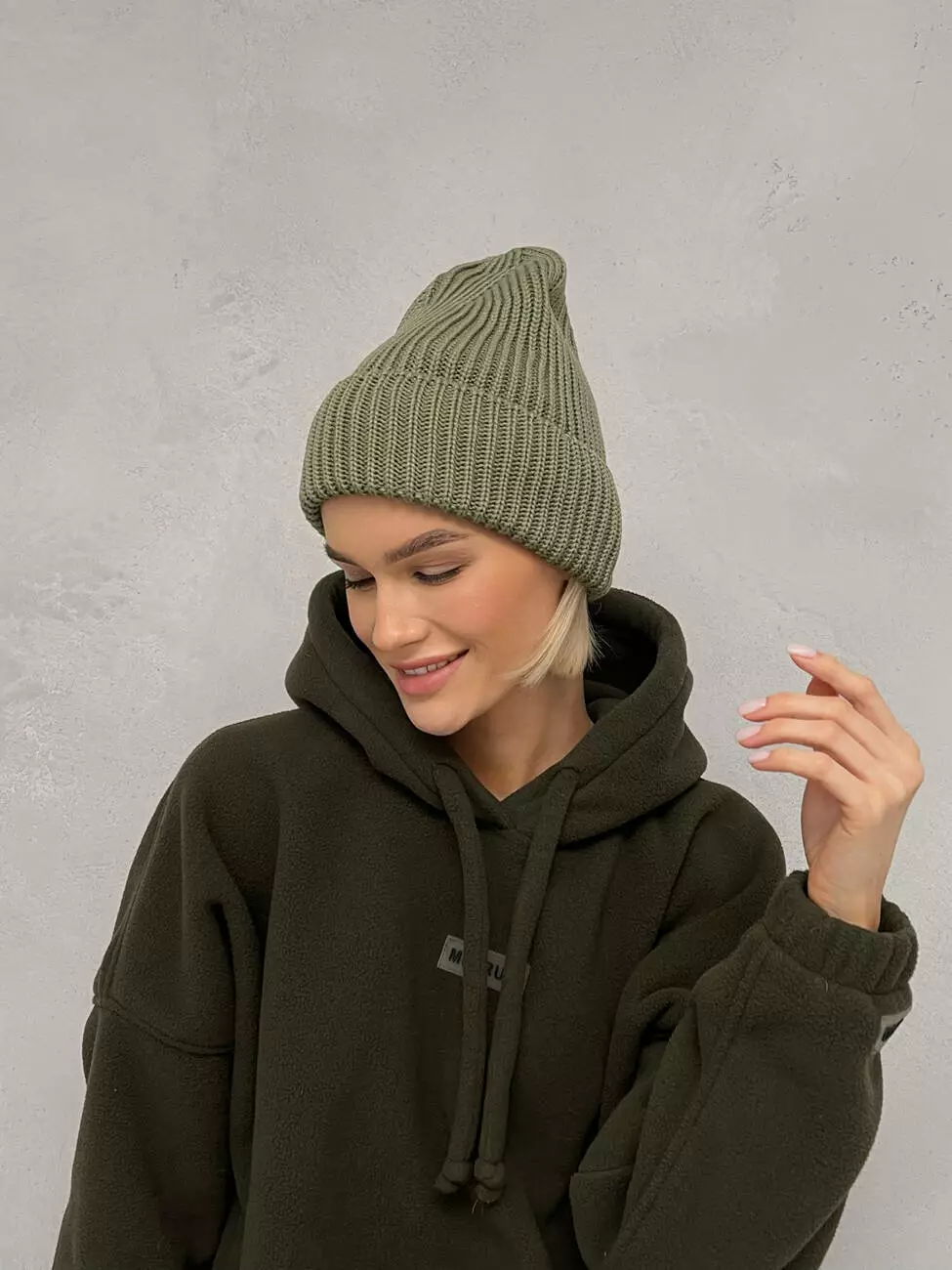 Тепла жіноча безшовна бавовняна шапка Fashion у рубчик колір хакі
