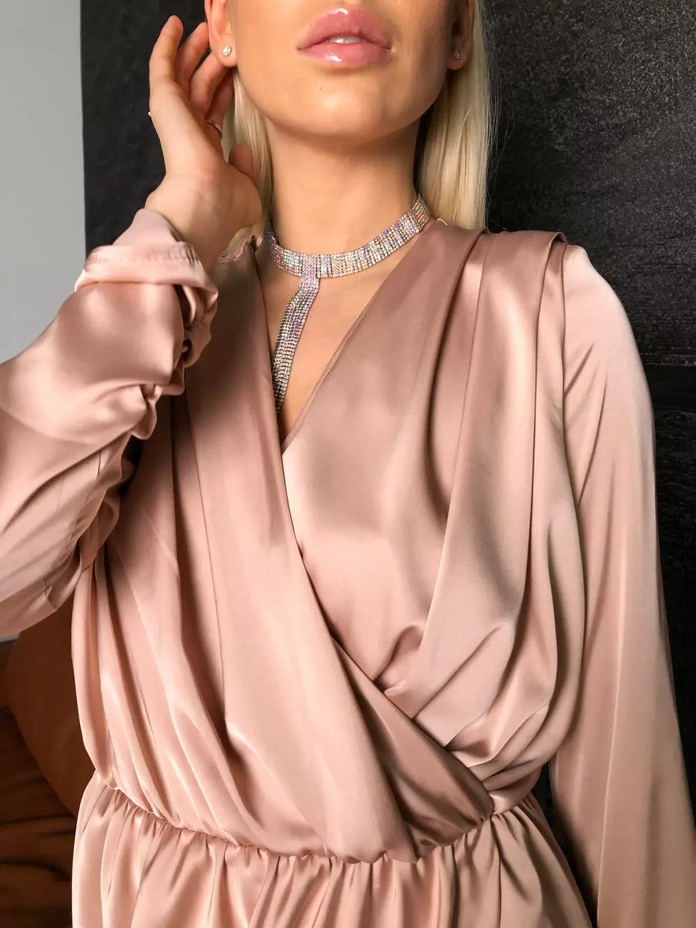 Модель з імітацією запах виконана з щільного та м'якого шовку Армані, який під час руху струмує та переливається, у ній почуватимешся бездоганною та впевненою.