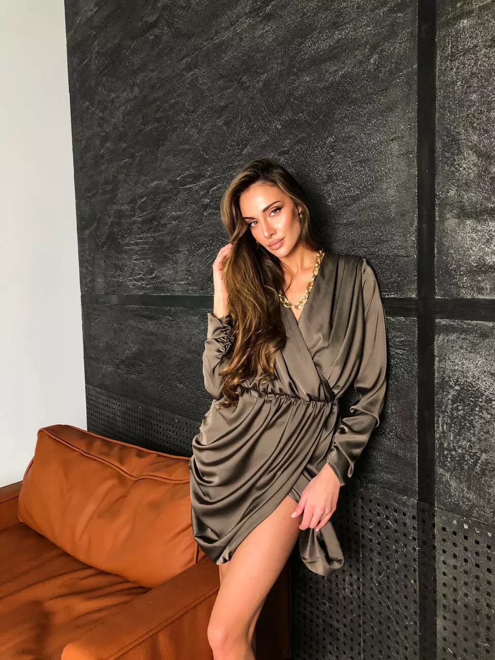 Модель з імітацією запах виконана з щільного та м'якого шовку Армані, який під час руху струмує та переливається, у ній почуватимешся бездоганною та впевненою.
