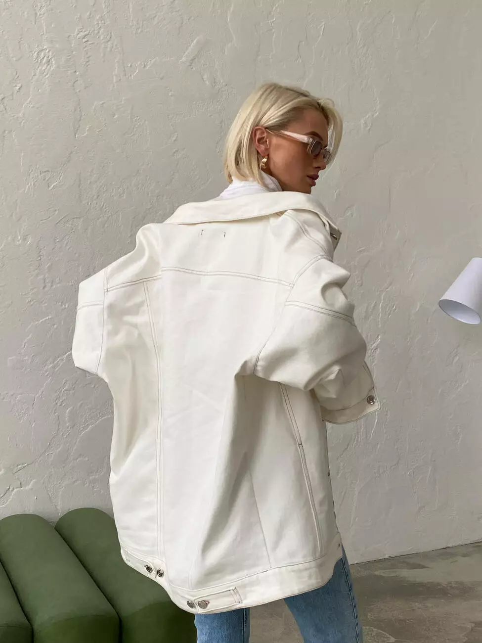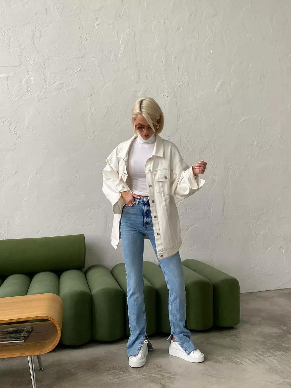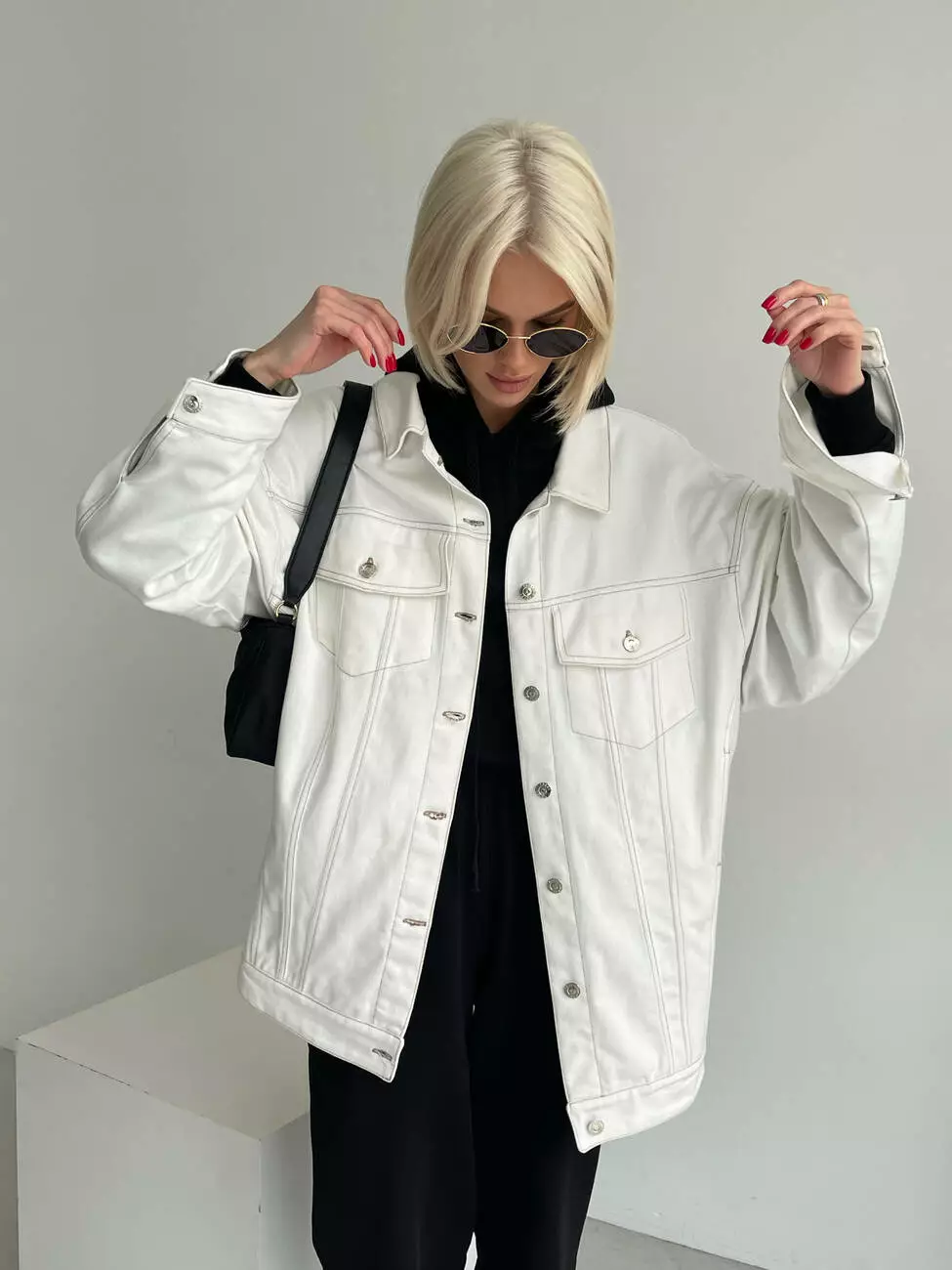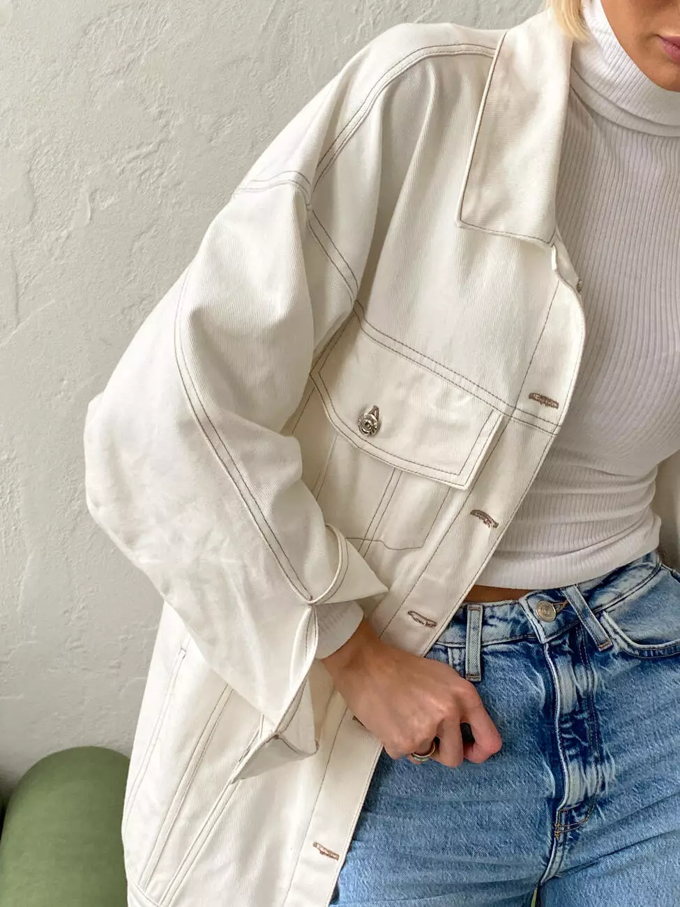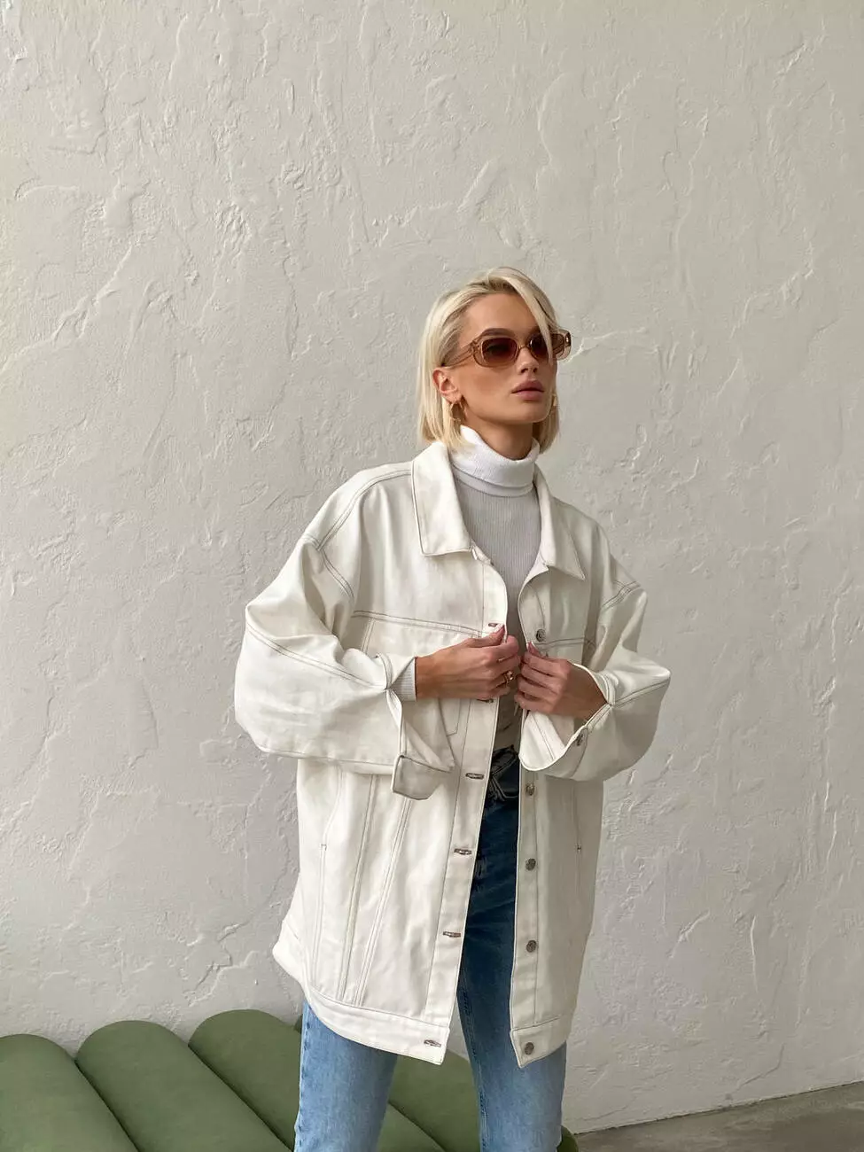 Жіноча подовжена джинсова куртка DENIM з якісного деніму білого кольору