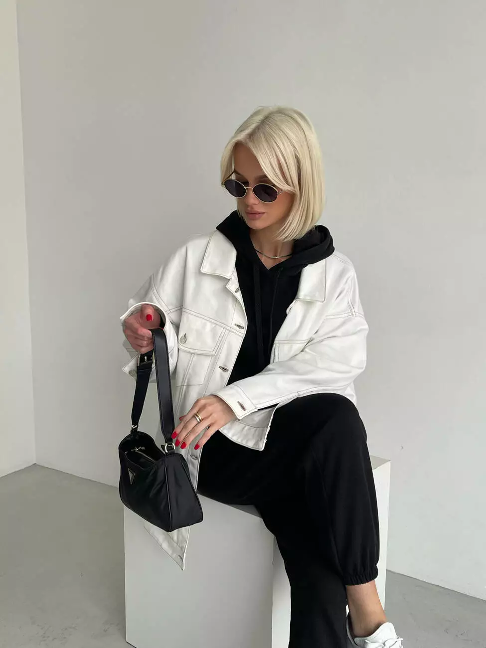 Куртка має вільний крій для повної свободи рухів, занижену лінію плечей, манжети на ґудзиках, нагрудні кишені з клапаном на ґудзиках.