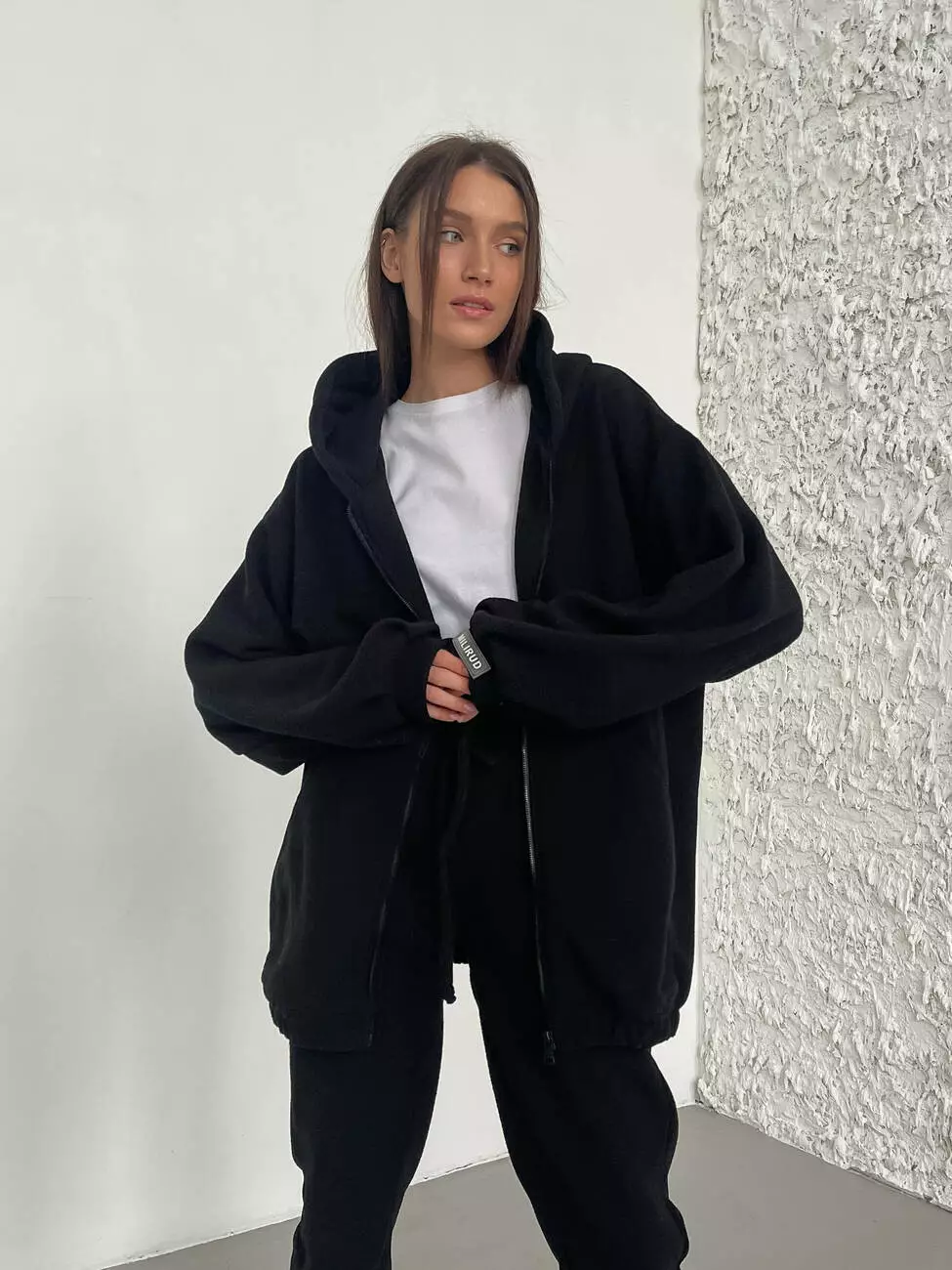 Жіночий флісовий базовий костюм ZIP блискавка чорного кольору