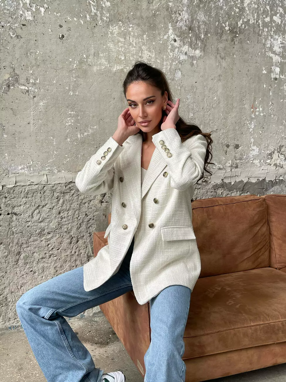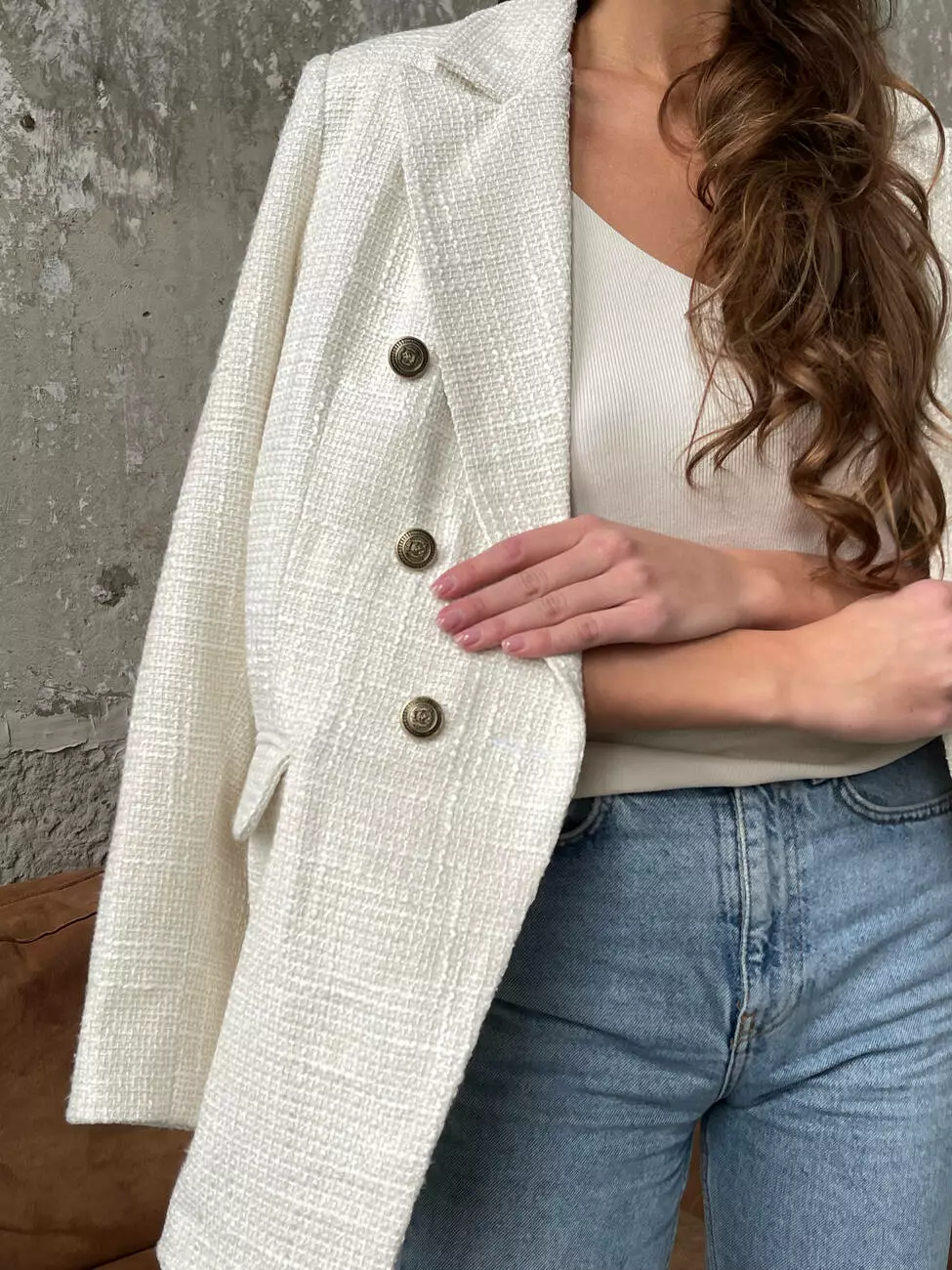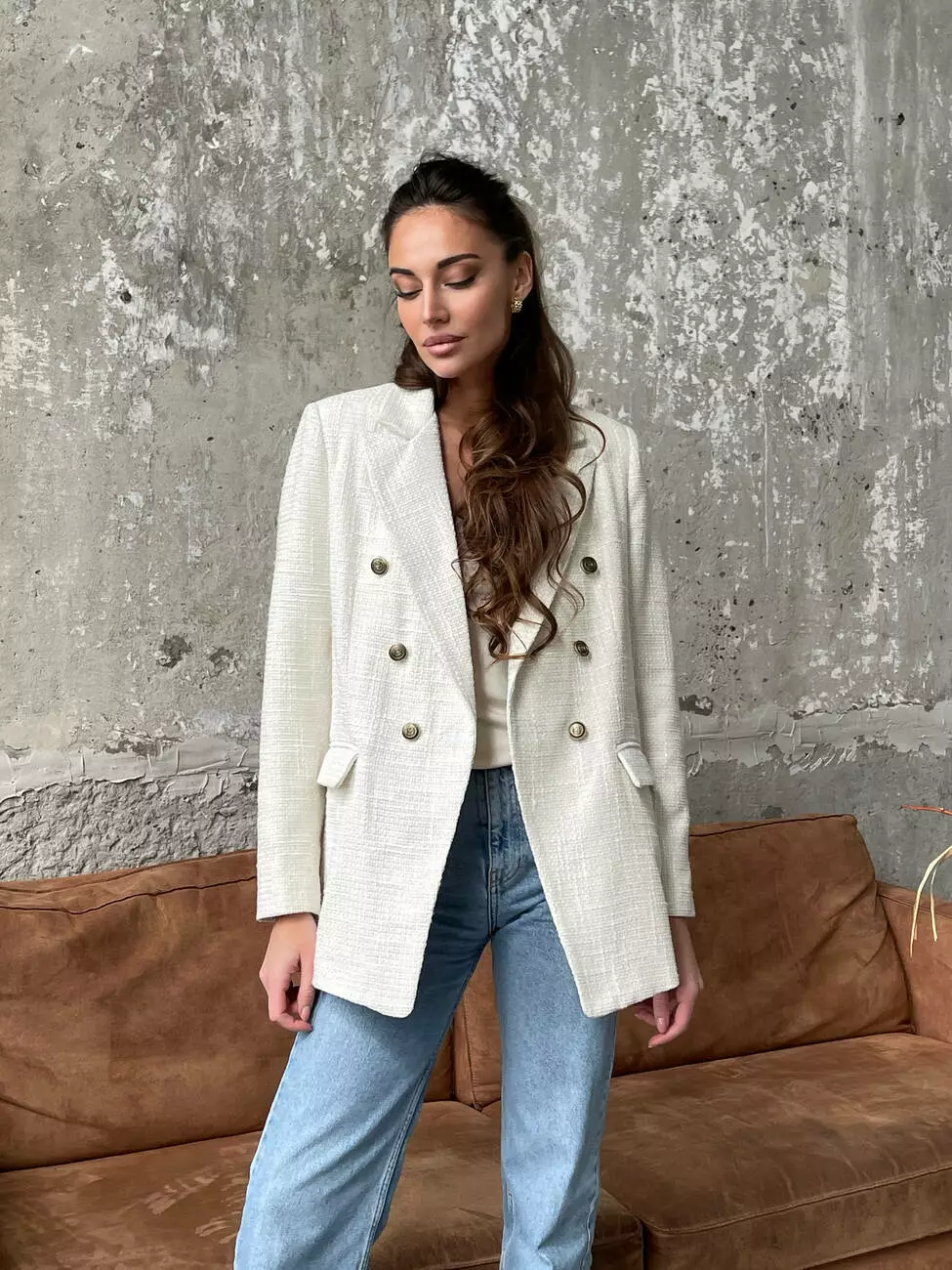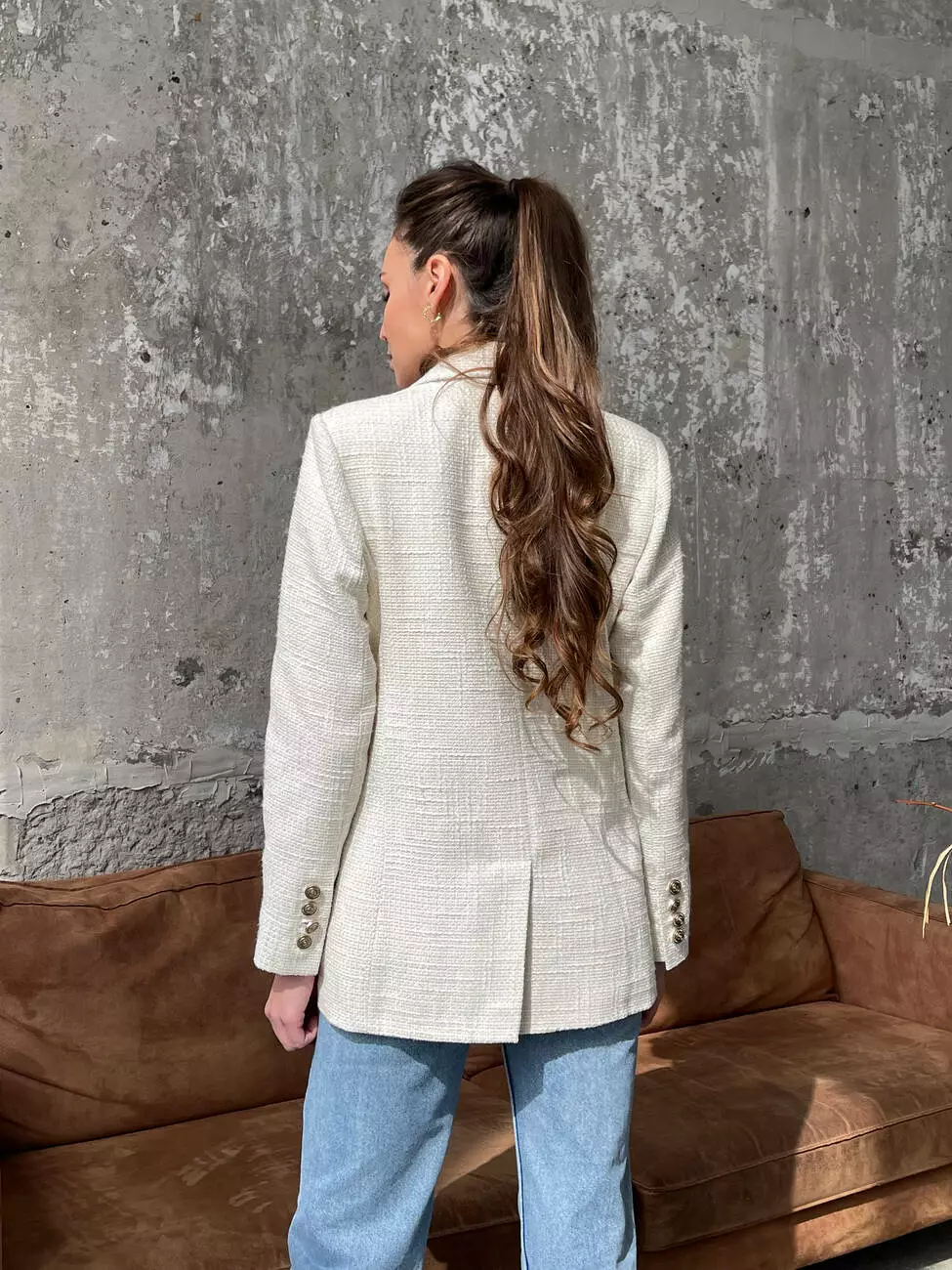 Твідовий двобортний піджак виконаний з якісного твіду Шанель, який чудово тримає форму і приємний на дотик, має шовкову підкладку для довговічності та комфорту.