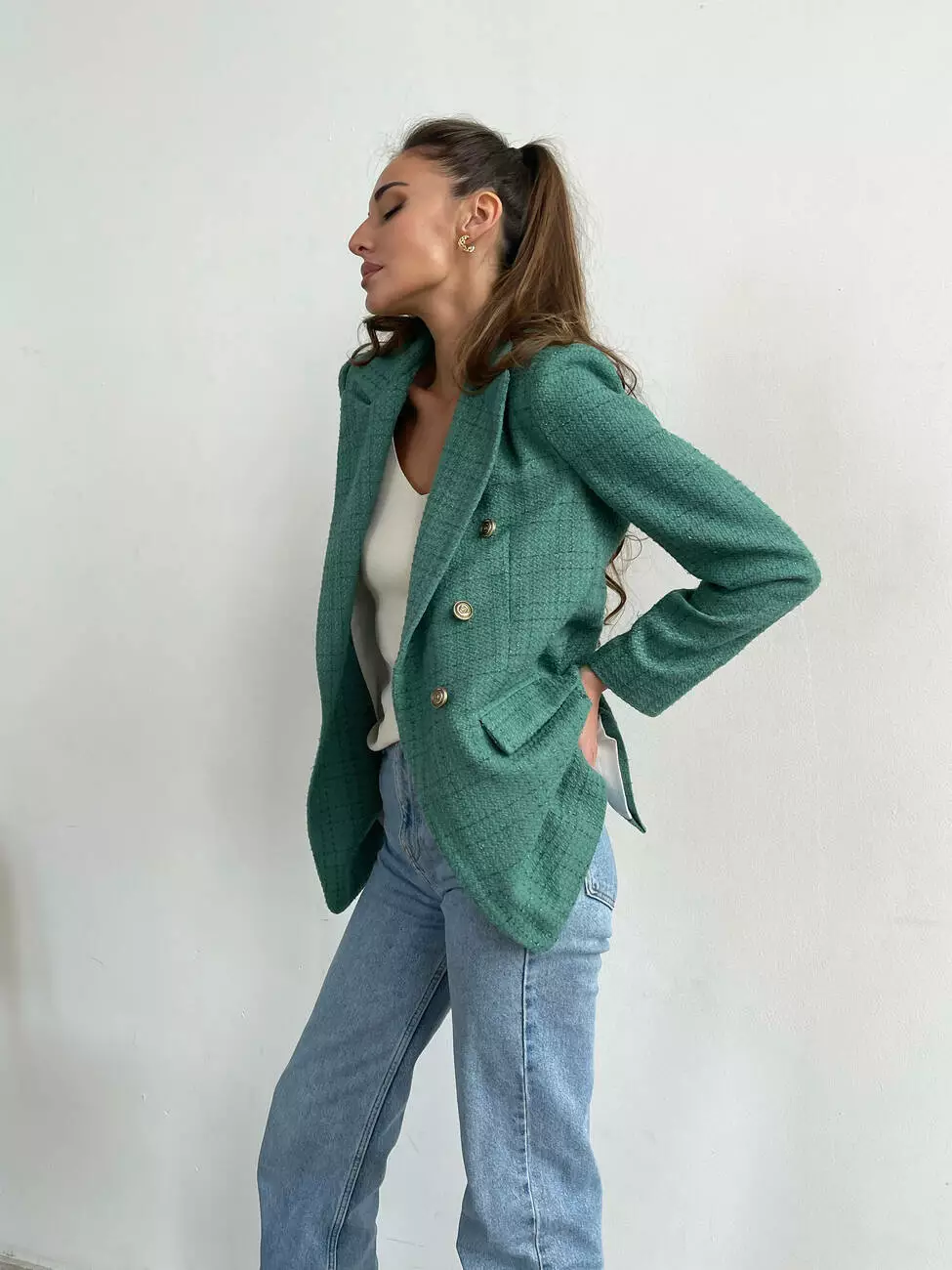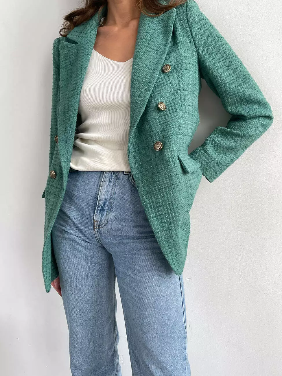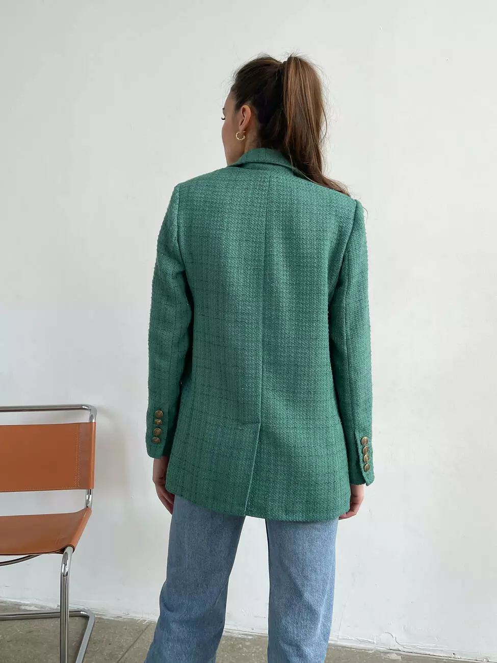 Жіночий твідовий піджак RICCO на підкладці зеленого кольору